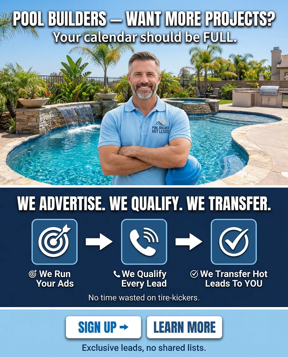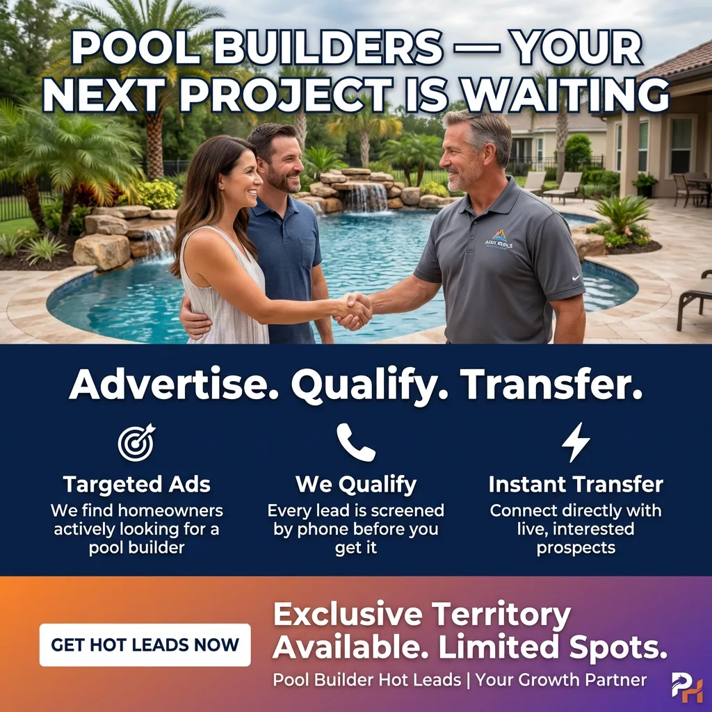 Pool Builder Hot Leads delivers exclusive, pre-qualified homeowners ready to build pools and outdoor projects.